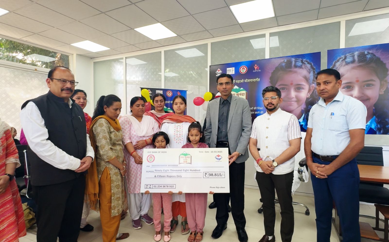 जिलाधिकारी सविन बसंल ने ‘‘नंदा सुनंदा’’ प्रोजेक्ट के तहत बालिकाओं को चैक किये वितरित