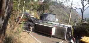 ज्योलीकोट नैनीताल पिथौरागढ़ से हल्द्वानी की ओर आ रही कुमाऊं मोटर ऑनर्स लिमिटेड की यात्री बसनंबर UK 04PA2641के ब्रेक फेल